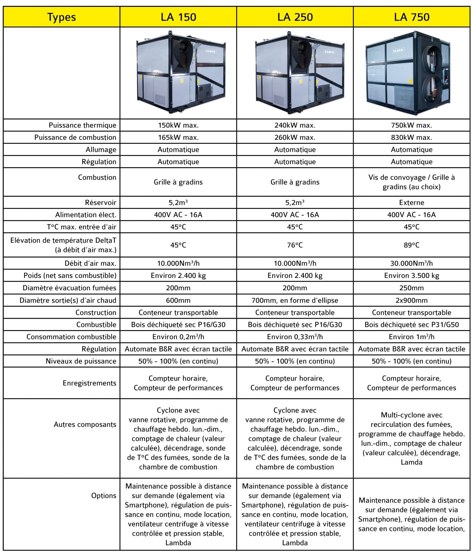 Les générateurs d’air chaud à bois déchiqueté type LAH90150 & LAH90250 sont compacts et transportables. Ils disposent de tous les équipements techniques de leurs grands frères…